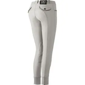 Kontrastné horné švy pre kontúry nôh a tvarované kolenné miesta na sedlo zo zosilnenej látky. Jeansové vrecká vpredu a malé vrecká s na zadnej strane, všetky zdobené kontrastným lemovaním. Elastický protišmykový pás s dvojitým pútkom na opasok. Široká slučka na opasku so znakom na zadnej strane.