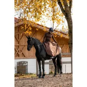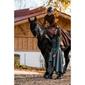 Dámska jazdecká termo sukňa perfektne chráni pred chladom ako jazdca, tak aj kone. Teplá fleecová podšívka výborne hreje nohy po celej dĺžke, vrchný materiál je priedušný a nepremokavý. V páse je mäkký fleecový pás, ktorý sa zapína na suchý zips, ktorým sa zároveň reguluje veľkosť v páse. Vďaka gumovým očkám, ktoré sa zaháknu za perká sa sukňa nikam počas jazdy nevyhŕňa a nepretáča.